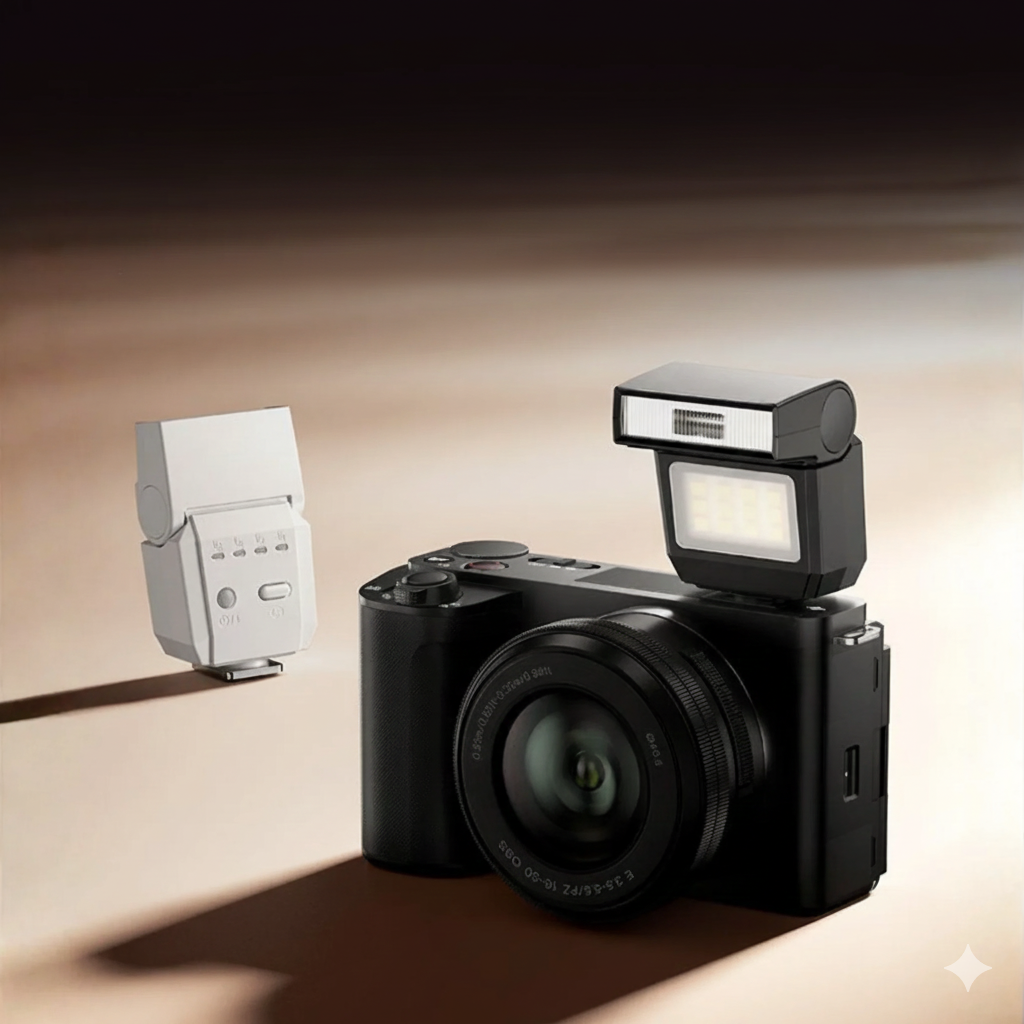 Modern fotoğraf makineleri için tasarlanan bu aksesuar, çekimlerinize tek kullanımlık film kameralarının ikonik flaş estetiğinigeri getirir.
